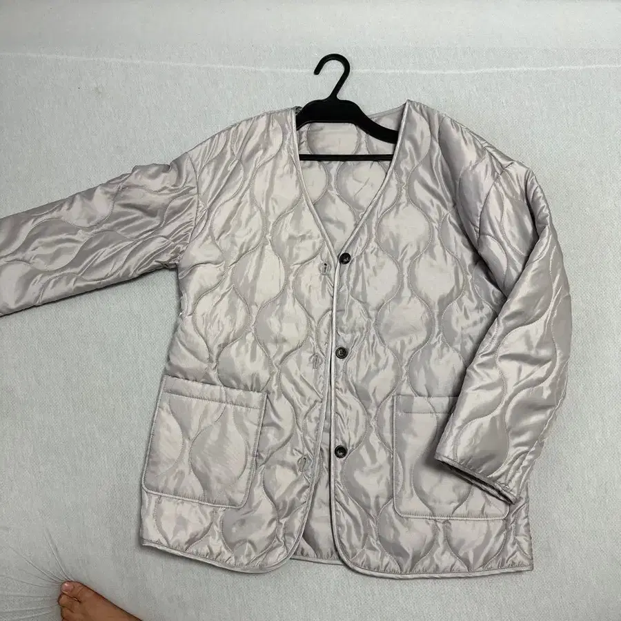 실버 퀼팅 자켓, M 사이즈, 앞면 버튼식, 앞면 포켓 부착. - 색상: 실버 - 사이즈: M - 디자인: 퀼팅 - 포켓: 앞면 포켓 부착 - 버튼: 앞면 버튼식 방문해 주셔서 감사합니다.