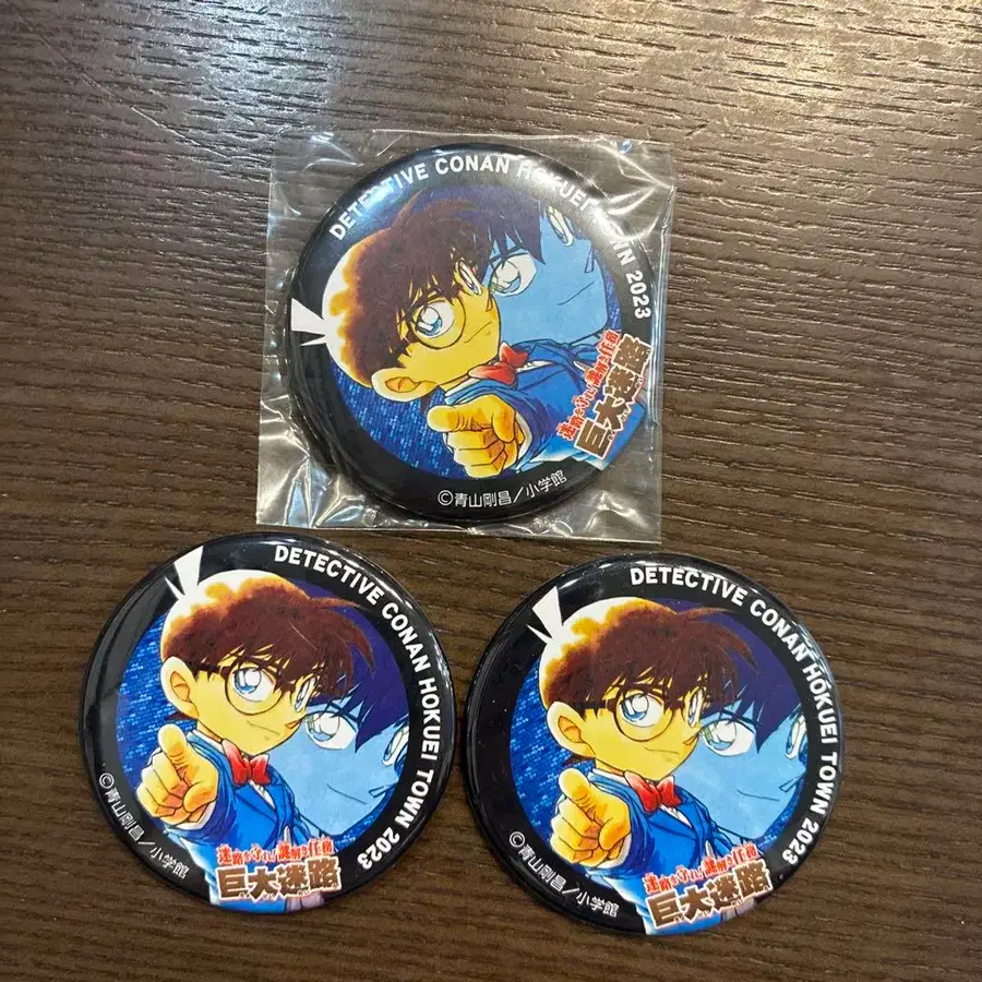 명탐정 코난 거대 미로에 참여했을 때 받은 캔 배지 3개 세트입니다.