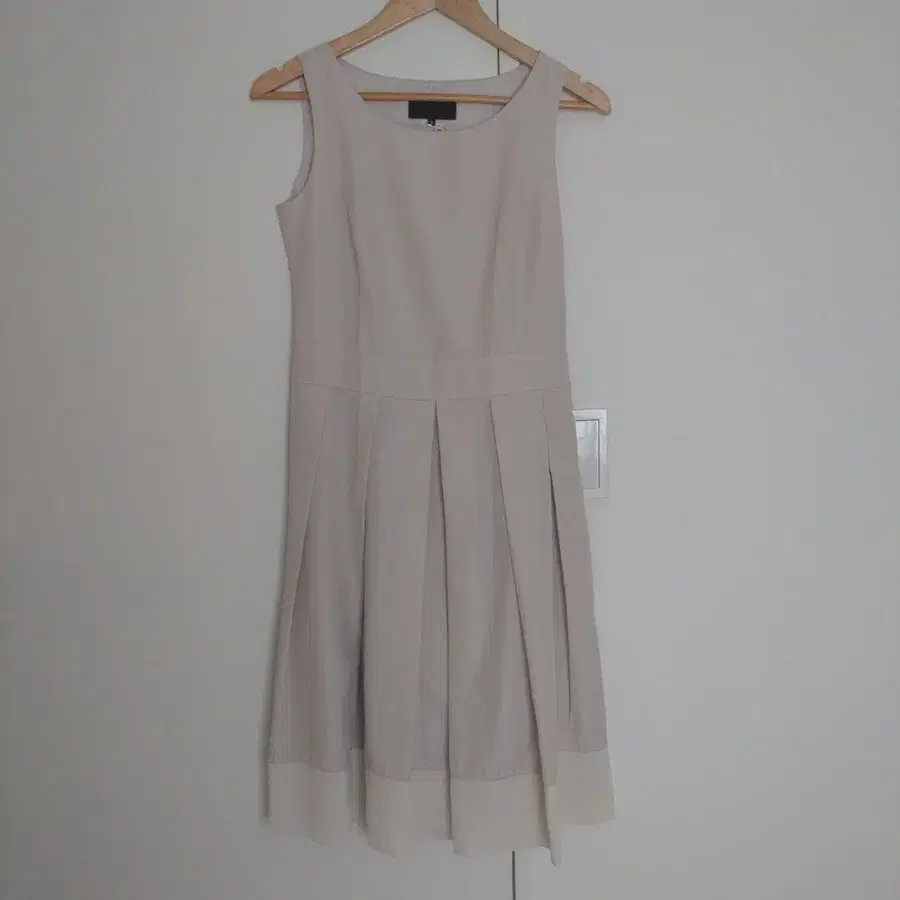 베이지색의 심플한 여름 아이템 원피스입니다.