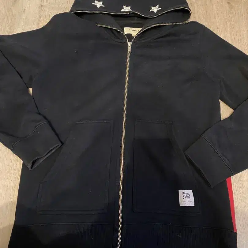별 자수가 특징적인 블랙 후드티. - 브랜드: TOMMY - 사이즈: M - 색상: 블랙 - 디자인: 별 자수 후드 - 포켓: 앞면 포켓 부착 방문해 주셔서 감사합니다.