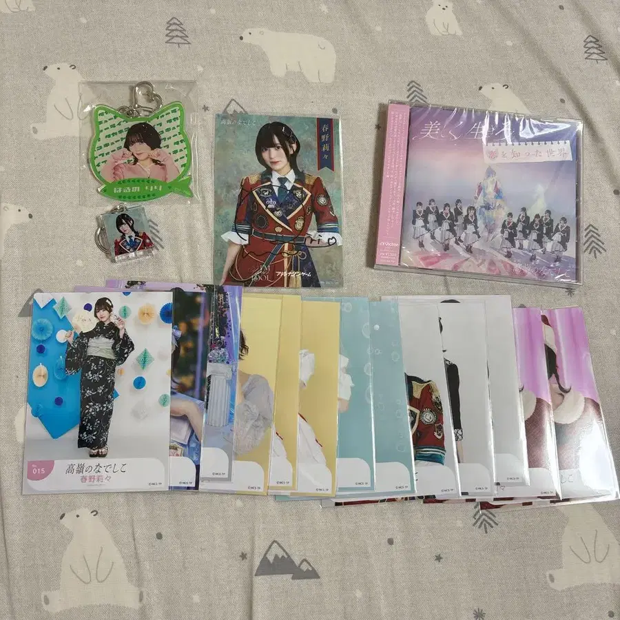 타카미네 나데시코 하루노 리리의 굿즈 세트입니다. 낱개 판매 불가 생사진 ×13 ※무늬가 중복될 수 있습니다. 구매 특전 사인 포함 생사진 ×1 구매 특전 아크릴 스탠드 키링 ×1 고양이 모양 아크링 키링 아름답게 살아라/사랑을 알게 된 세계 CD 아크릴 스탠드만 먼지가 쌓이지 않는 케이스에 보관하고 있었습니다. 그 외는 개봉하지 않았으며, 외부로 반출한 적이 없습니다.