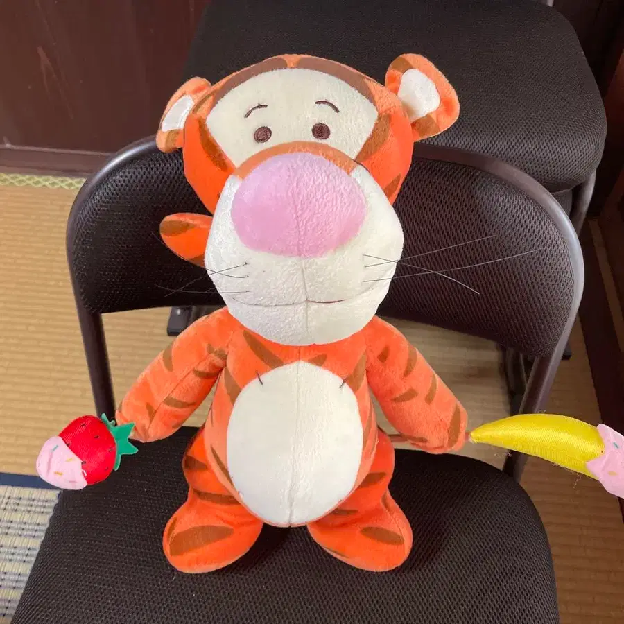 티거 봉제 인형으로, 이치고와 바나나가 들어간 귀여운 디자인입니다. 캐릭터: 티거 색상: 오렌지 액세서리: 이치고와 바나나 손잡이 소재: 봉제 인형 디자인: 스트라이프 무늬 방문해 주셔서 감사합니다.