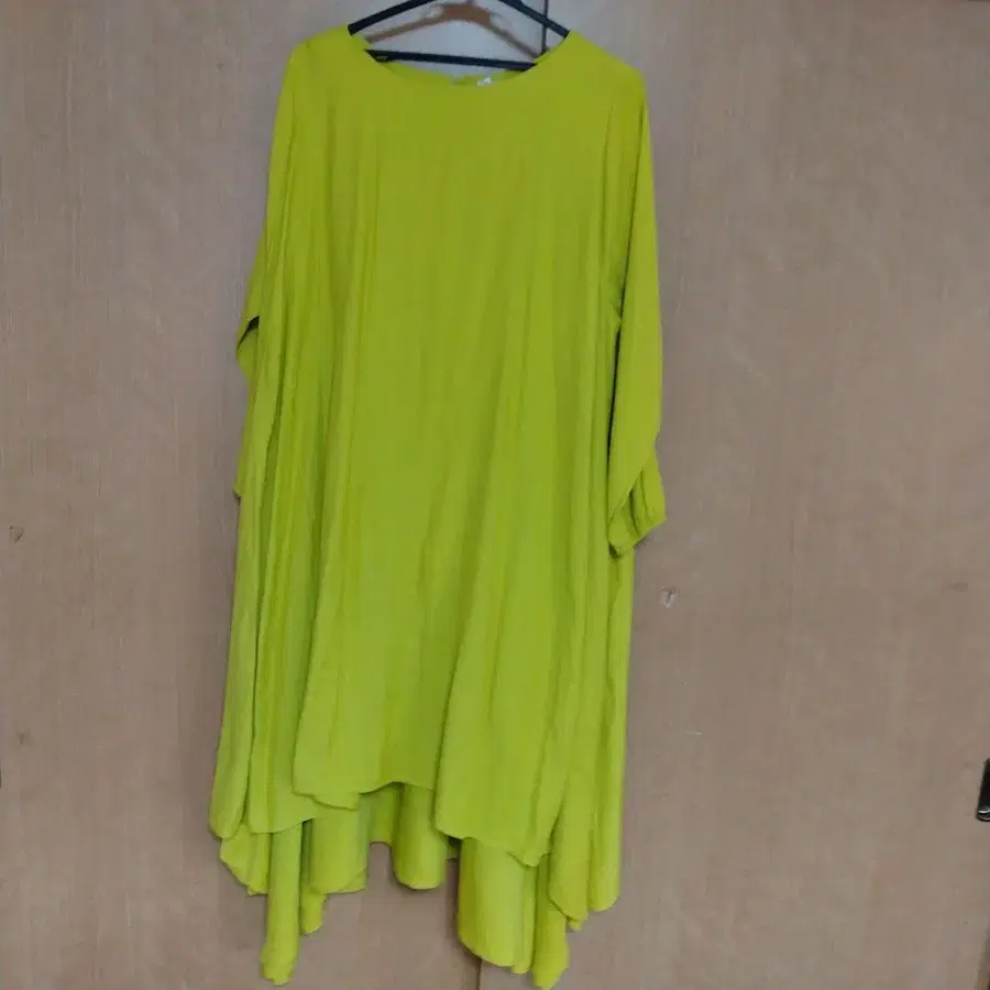 라임 그린 같기도 하고 겨자색 같기도 한 레이온 소재의 롱 원피스입니다. 사이즈는 F이며, 흐르는 듯한 디자인이 특징입니다. 드레이프가 2겹으로 디자인되었습니다. 어깨 너비 40 가슴 너비 66 (겨드랑이 아래 부분 기준) 기장 124 (가장 긴 부분 기준) 셀렉샵에서 구매했지만 한 번도 착용하지 않고 보관만 했습니다. 시원한 소재입니다.