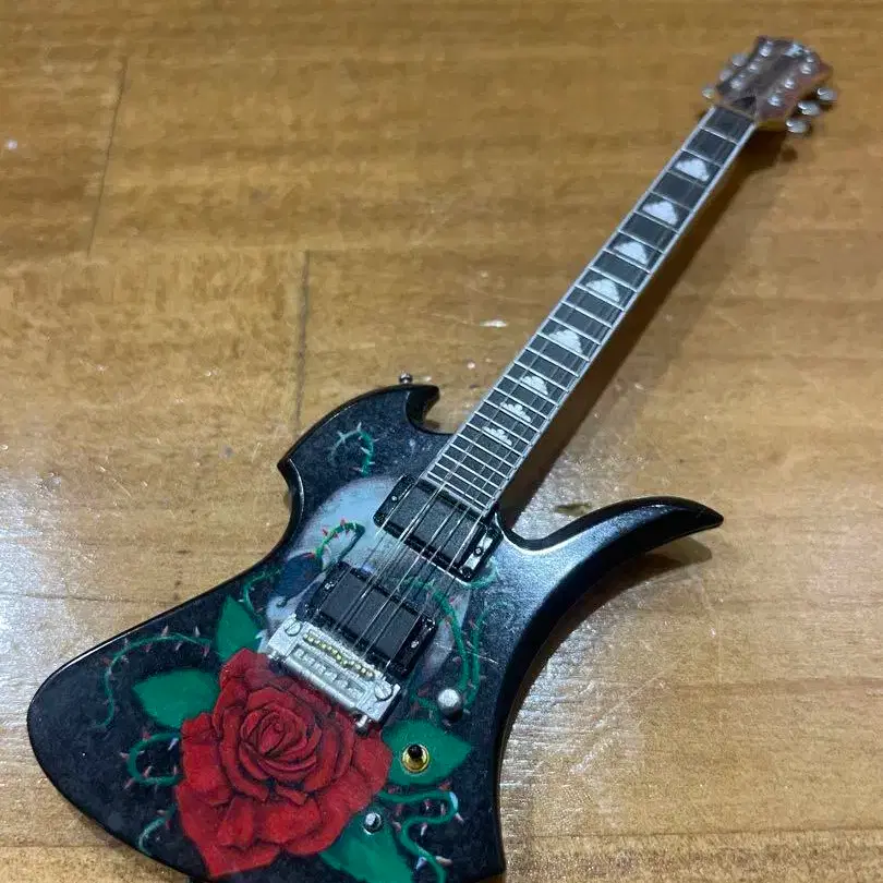 HIDE X 초기 모델의 미니어처 일렉 기타. - 모델: 일렉 기타 - 디자인: 장미 그림체 - 색상: 블랙/빨간색/그린 - 소재: 플라스틱 - 사이즈: 미니어처 방문해 주셔서 감사합니다.