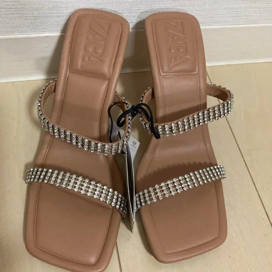 ZARA 새상품 브라운 플랫 샌들 힐 3cm