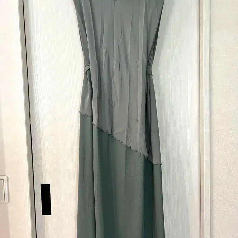 • s.1813 [미니루] 긴팔 노카라 셔츠 롱 원피스 광택 그린