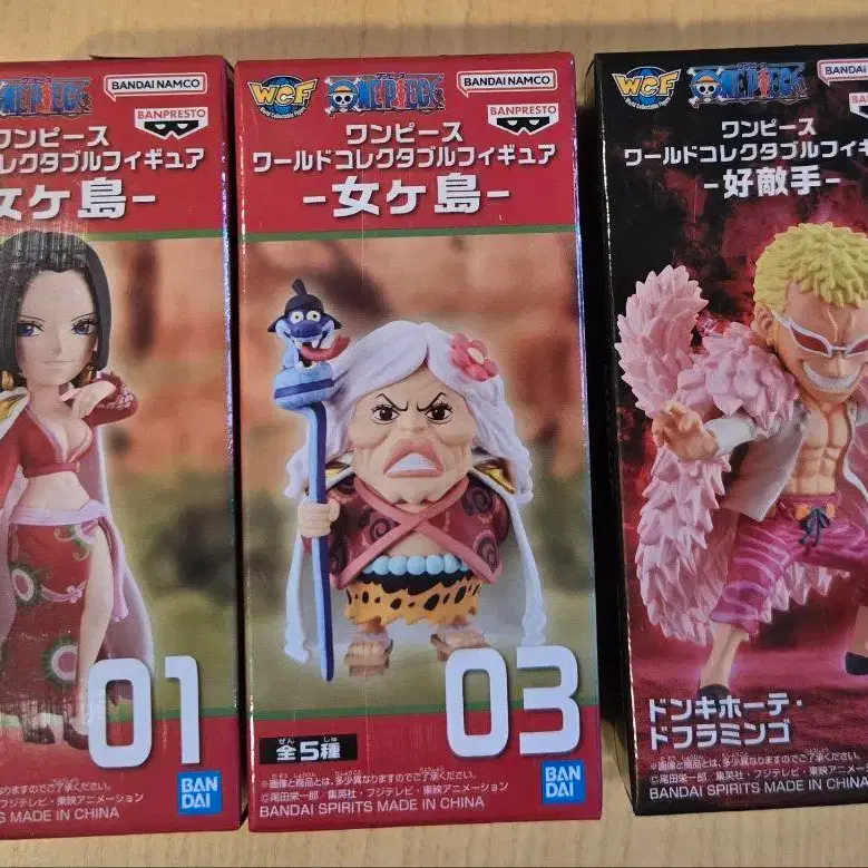 보여 주셔서 감사합니다. 원피스 월드 컬렉터블 피규어 ~여자 섬 편~ ☆한콕 ☆글로리오사 ~좋은 적~ ☆도플라밍고 총 3종 세트입니다. 인형뽑기 경품이므로, 획득 시 초기 흠집 등이 있을 수 있습니다. 이 점을 양해하실 분만 구매 부탁드립니다. 상자가 파손되지 않도록 방수 대책 및 에어캡으로 감싸서 발송하지만, 배송 시의 트러블에 대해서는 책임을 지지 않습니다.