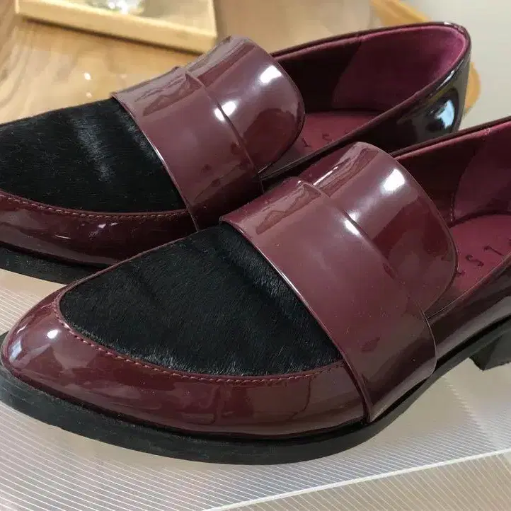 플라스테 버건디 패턴트 레더 모카신 23cm