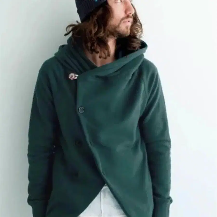 다크 그린 색상의 후드티입니다. 약간의 보풀이 있지만, 아직 상태는 깨끗하다고 생각합니다. 후드가 부착된 다크 그린 자켓으로, 비대칭 디자인이 특징입니다. - 색상: 다크 그린 - 디자인: 후드 부착, 단추식, 비대칭 밑단 - 소재: 부드러운 맨투맨 원단 - 특징: 가슴 부분 장식 버튼 방문해 주셔서 감사합니다.