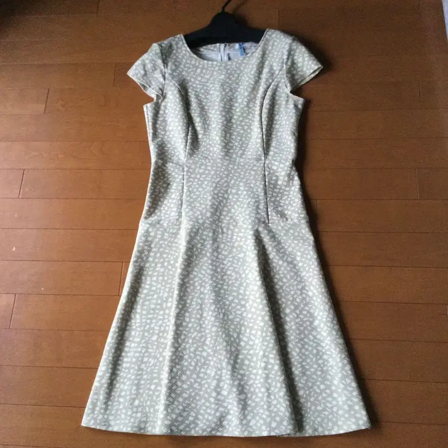 베이지 바탕에 잔잔한 화이트 패턴의 원피스입니다. 자켓이나 볼레로에 잘 어울리는 상품입니다. 사이즈 M 어깨 너비 36.5cm 가슴 너비 40cm 기장 90cm