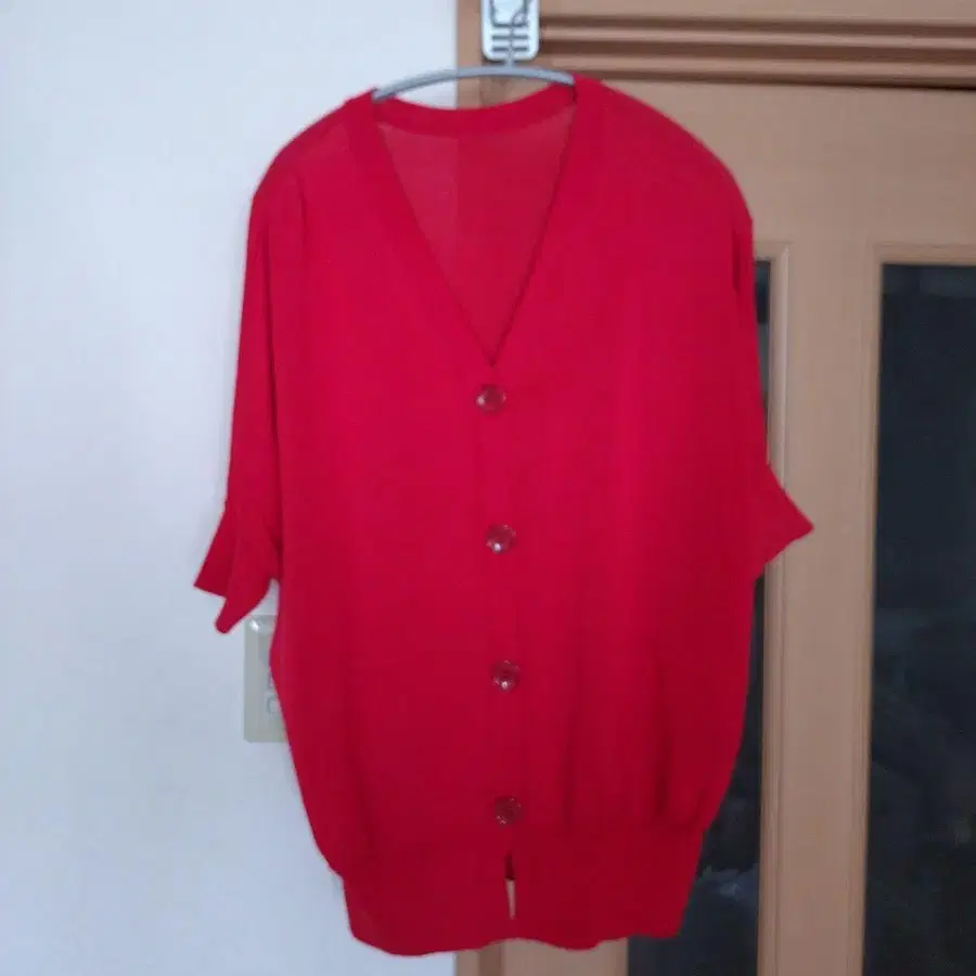 선명한 빨간색 버튼이 달린 반팔 가디건. - 색상: 빨간색 - 스타일: 버튼 가디건 - 소매 길이: 팔꿈치를 덮는 정도 방문해 주셔서 감사합니다.