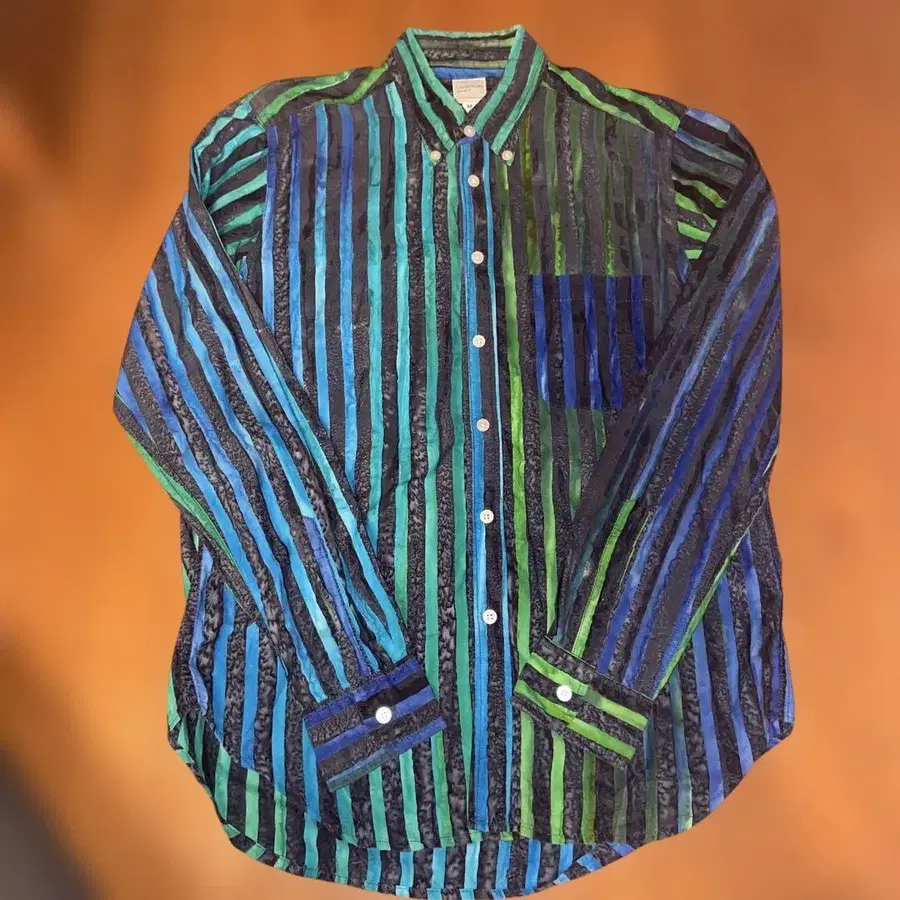 네펜데스의 블루와 그린 스트라이프가 특징적인 버튼 다운 셔츠. - 색상: 블루, 그린, 블랙 스트라이프 - 디자인: 버튼 다운 셔츠 - 포켓: 왼쪽 가슴에 포켓 있음 - 소재: 코튼 - 스타일: 캐주얼 방문해 주셔서 감사합니다. 색상···그린 계열 무늬···스트라이프 컬러 디자인···버튼 다운(BD) 사이즈 M 어깨 너비 44 가슴 너비 51 소매 길이 65 기장 71 개인 측정한 치수이므로 오차가 있을 수 있습니다.
