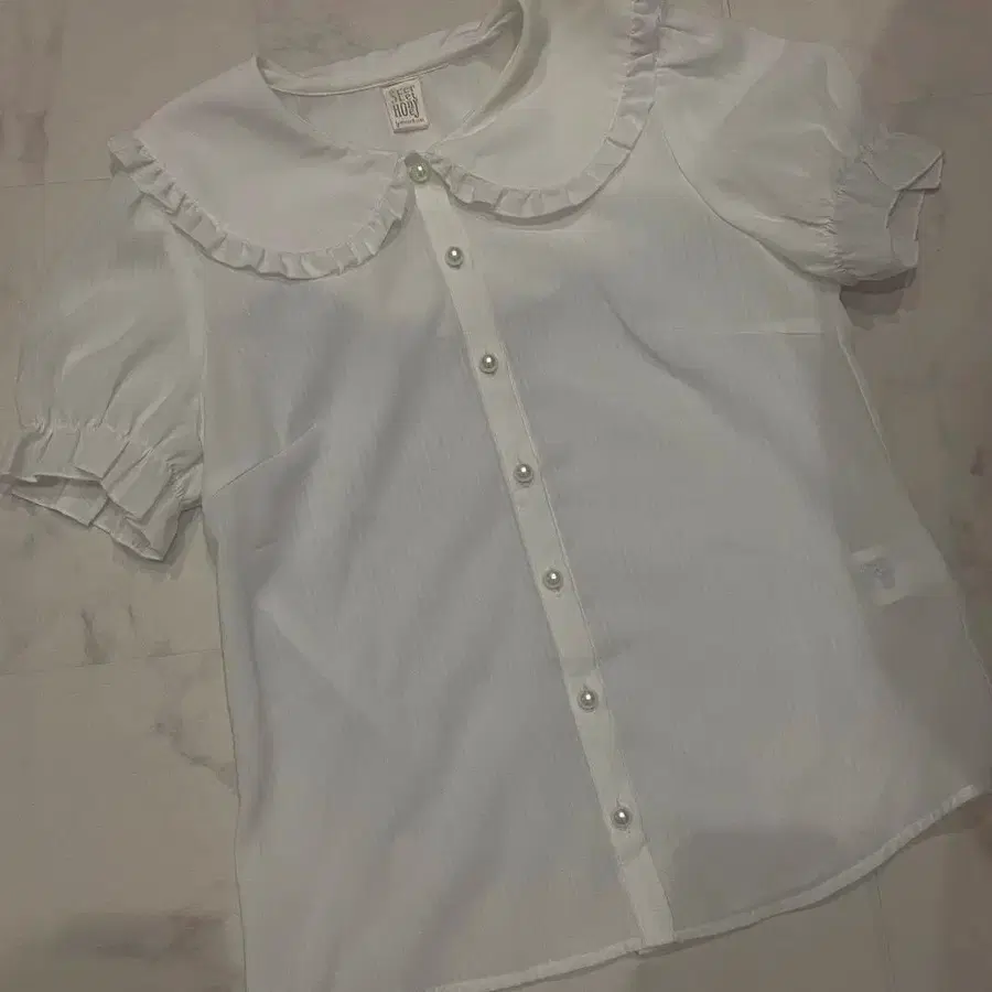 [ 특가 ] 옅은 옐로우 컬러 반팔 블라우스