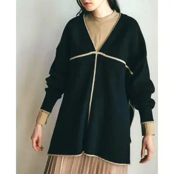 • 다크 네이비 플레어 실루엣 긴팔 니트탑