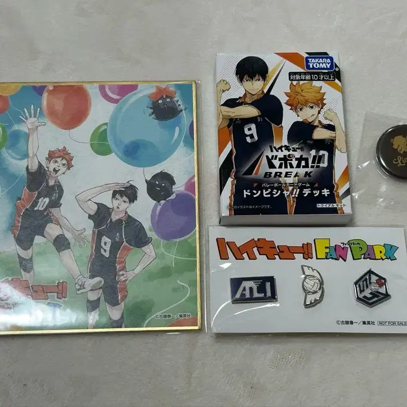 하이큐 팬 파크에서 받은 정기 구독자 선행 한정, 3개 팀 마크 오리지널 핀즈와 방문객 특전 색지, 바보카, 캔뱃지 4개 세트입니다.
