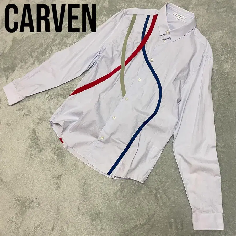 CARVEN 곡선 디자인 셔츠 파랑 빨강 카키 긴팔 남성용 M~L 상당