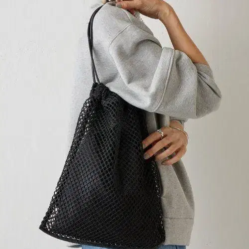 ※ 단 한 번 사용했습니다. 길이 조정 가능합니다. 메쉬 소재의 블랙 복조리 숄더백, 안쪽 포켓이 있어 사용하기 편리한 디자인. - 색상: 블랙 - 소재: 메쉬 - 디자인: 복조리형 - 특징: 안쪽 포켓 부착 - 스타일: 캐주얼 #LIVETART #숄더백