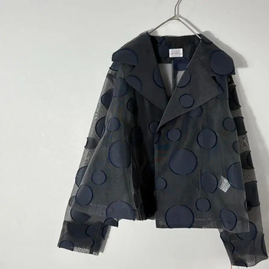 뭉게뭉게 가볍고 산뜻한 시어 소재에, 빅 사이즈의 입체 도트를 배치한 인상적인 디자인의 자켓입니다.