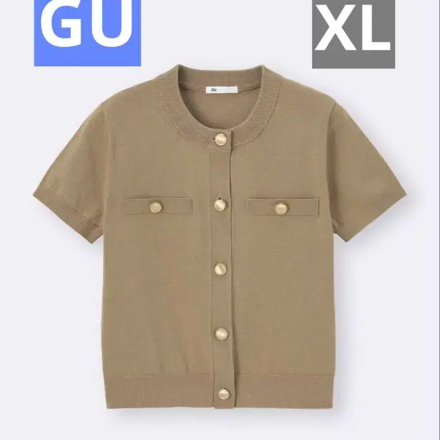 새상품 지유 GU 반팔 메탈 버튼 가디건 베이지 XL 완판템