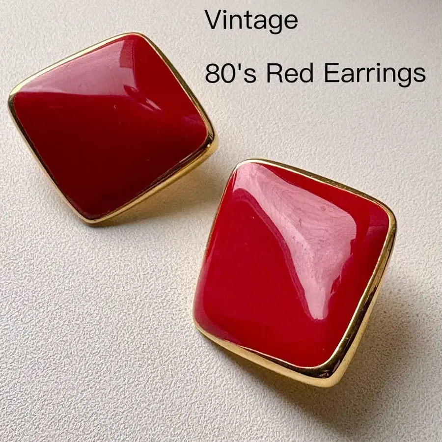 빈티지 80's 곡선 스퀘어 레드 귀찌