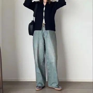 • LOWO 세미 하이웨스트 와이드 데님 팬츠