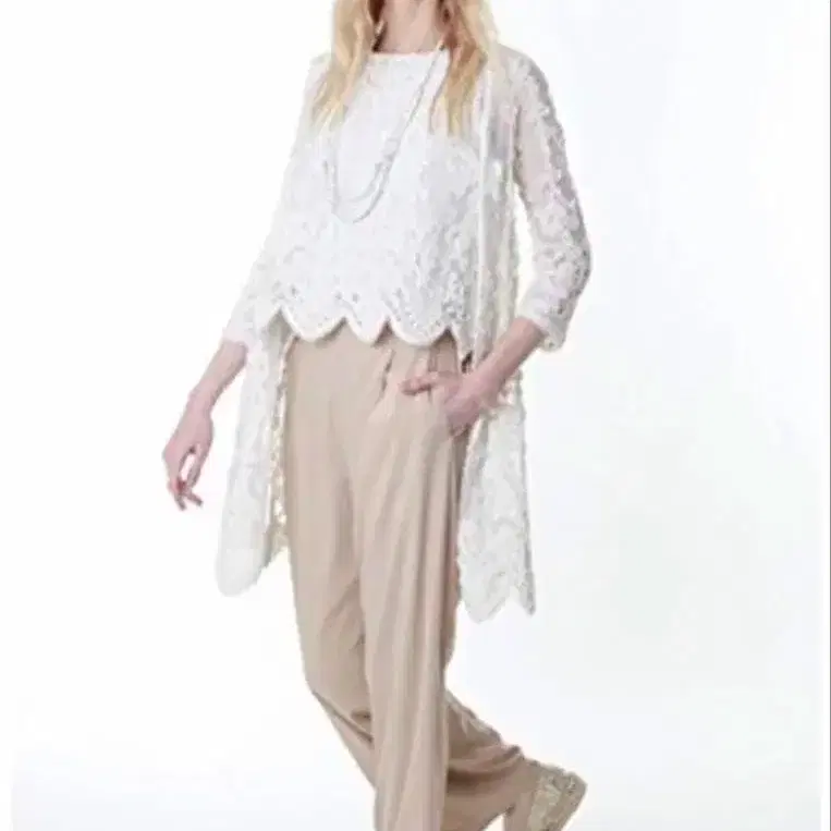 그레이스 콘티넨탈 테이프 자수 레이스 롱 가디건 36