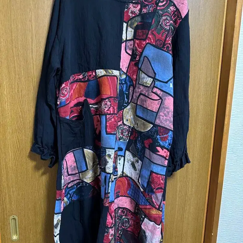 브리란테 컬러풀한 추상 무늬 긴팔 롱 원피스 M-L