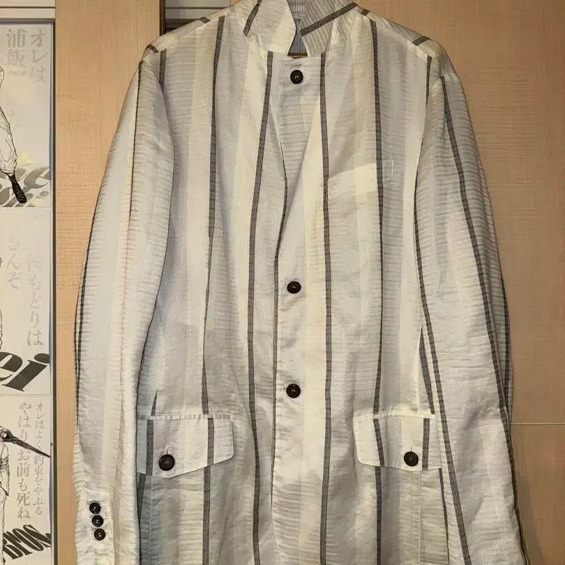 GIORGIO ARMANI 화이트 스트라피 테일러드 자켓입니다. 어깨 너비: 47cm 가슴 너비: 55cm 총길이: 78cm 소매 길이: 66cm 개인 측정입니다. 부속물 없음. 상태는 사진으로 확인 부탁드립니다! 얼룩, 찢김, 냄새 등... 있음 얼룩, 찢김, 냄새 등... 없음 패턴... 스트라이프