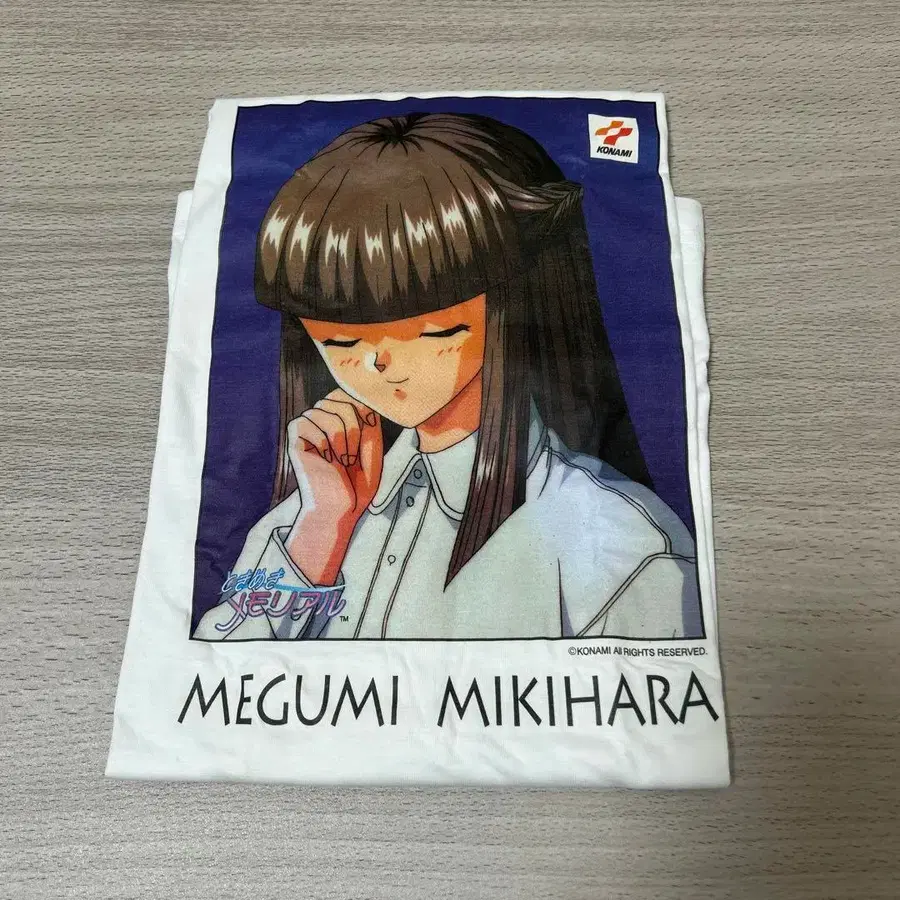 두근두근 메모리얼 미키하라 아이 티셔츠 게임 '두근두근 메모리얼'에서 미키하라 아이의 티셔츠입니다. 30년 전 인형뽑기 경품으로, 외부 박스는 노후화로 처분했습니다. 미사용 새상품이지만, 촬영을 위해 봉지에서 꺼내 놓았습니다. 새로운 비닐봉지에 넣어 발송합니다. 즉시 구매 ○