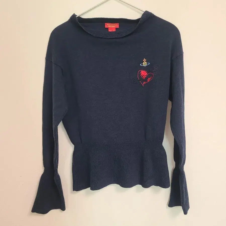 비비안 네이비 니트 스웨터 S 하트 자수