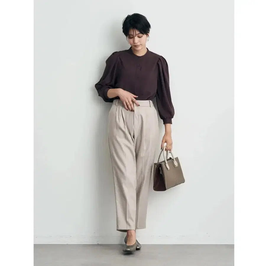 부드럽게 퍼지는 파워 숄더가 트렌디한 블라우스입니다. 어깨의 전환 부분에 턱을 넣어 고급스러운 스타일로 완성했습니다.