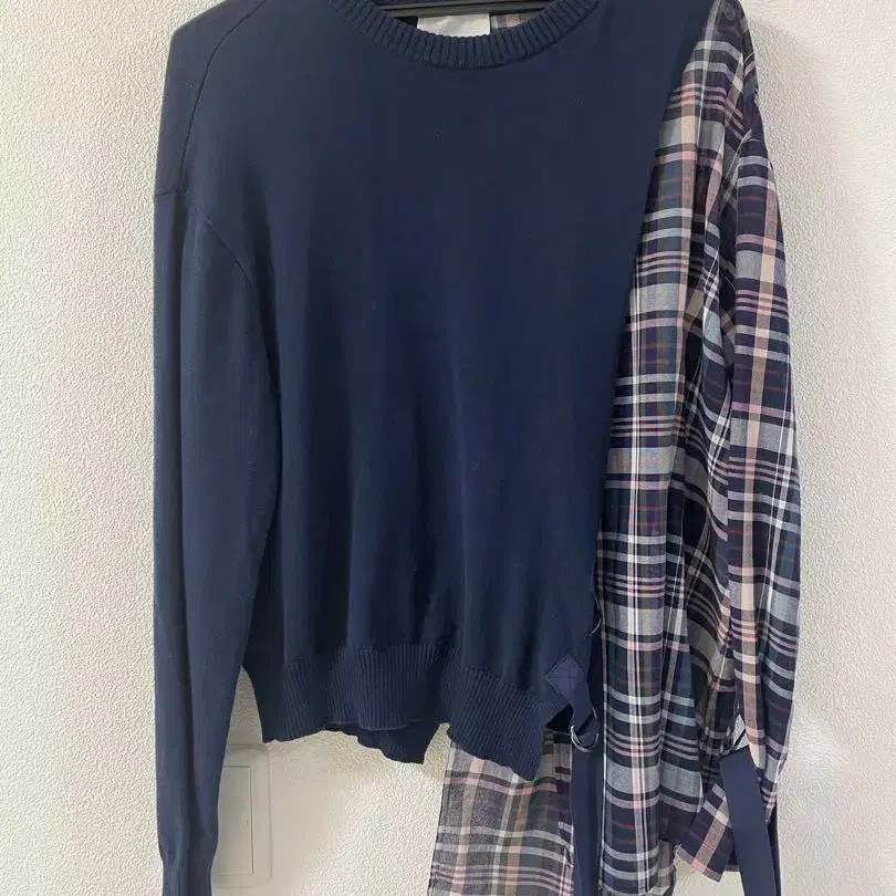 EZUMi 네이비 체크 무늬 긴팔 스웨터