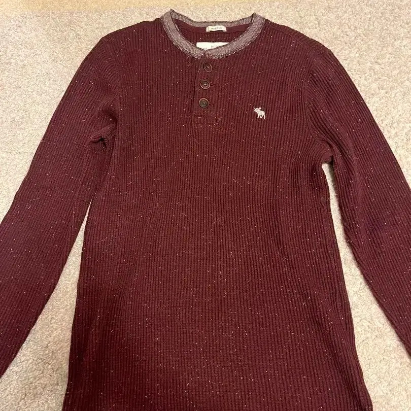 버건디 리브 스웨터, 버튼이 달린 슬림핏. - 색상: 버건디 - 사이즈: S - 브랜드: 아베크롬비 - 디자인: 리브, 버튼 - 소매 디자인: 그레이 리브 - 특징: 슬림핏 방문해 주셔서 감사합니다.