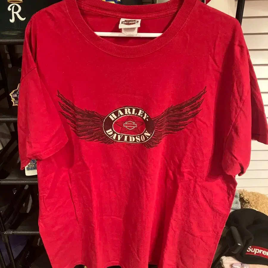 할리데이비슨 빨간색 티셔츠 윙 로고