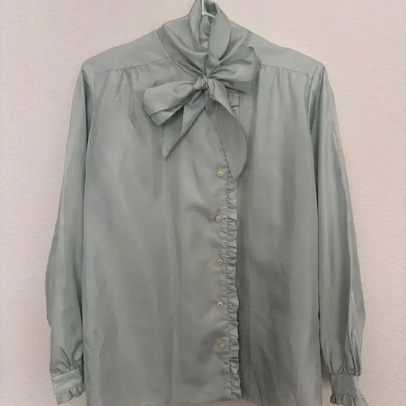 라이트 블루 리본 포함 긴팔 셔츠 프릴 빈티지 레트로 itimi