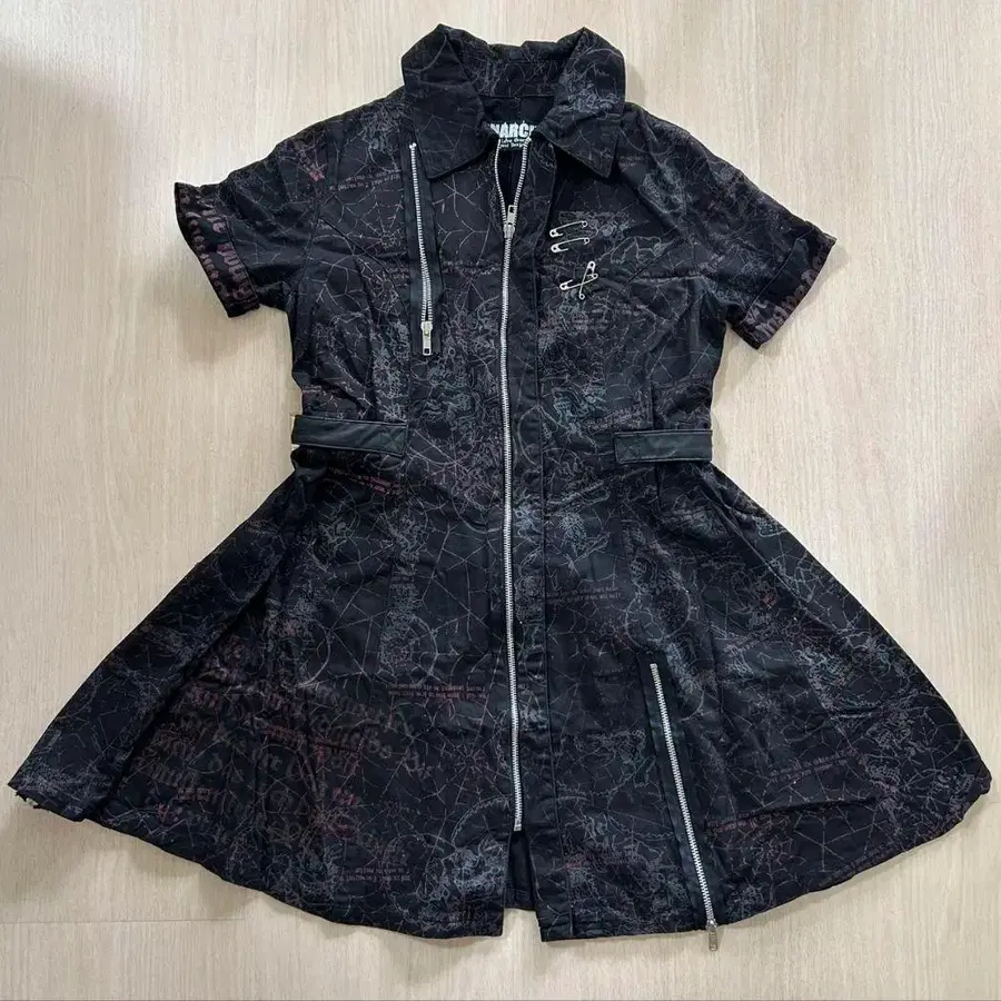 h.ANARCHY의 반팔 집업 블랙 원피스입니다. 블랙 바탕에 짙은 보라색 무늬가 들어 있습니다. 자택 보관품이므로 컴플레인은 받지 않습니다.