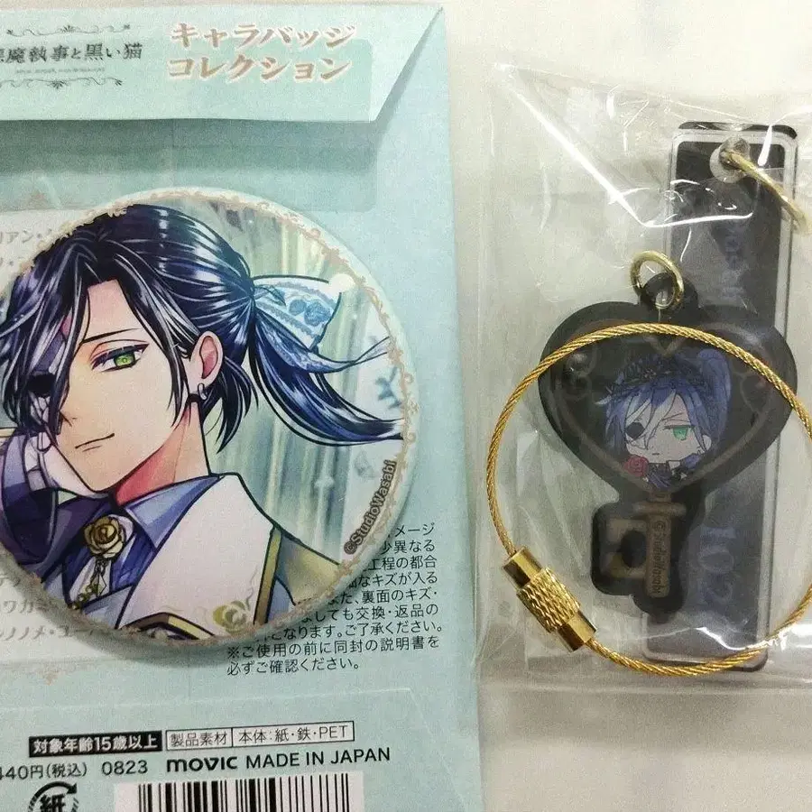 악마 집사와 검은 고양이 보스키 열쇠형 키링 & 캔뱃지 세트 악마 고양이