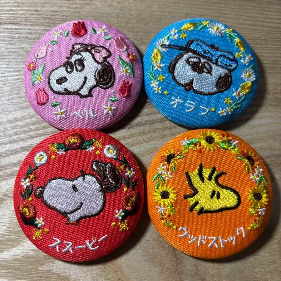 스누피 캔뱃지 시크릿 꽃말 자수 캔뱃지 4종 세트