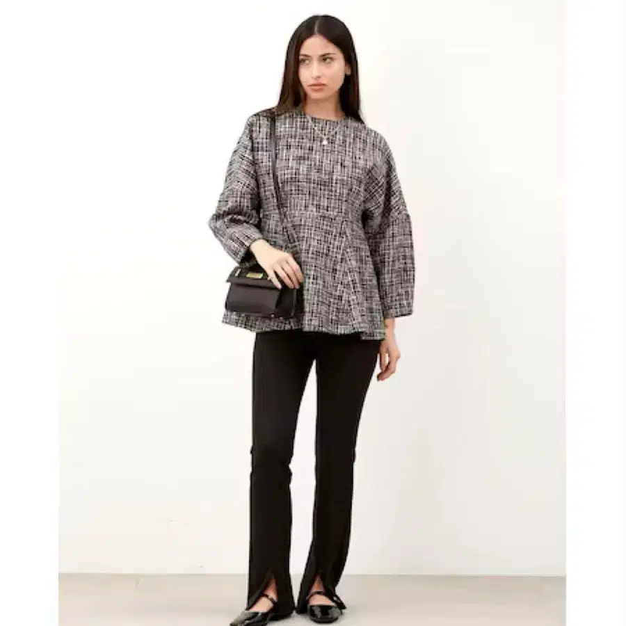 미라 오웬 구조 소매 페플럼 튜닉 자카드 믹스 블랙 0