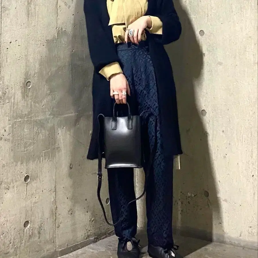 앙코키누 고밀도 코튼 믹스 턱 와이드 팬츠 블랙 M 사이즈