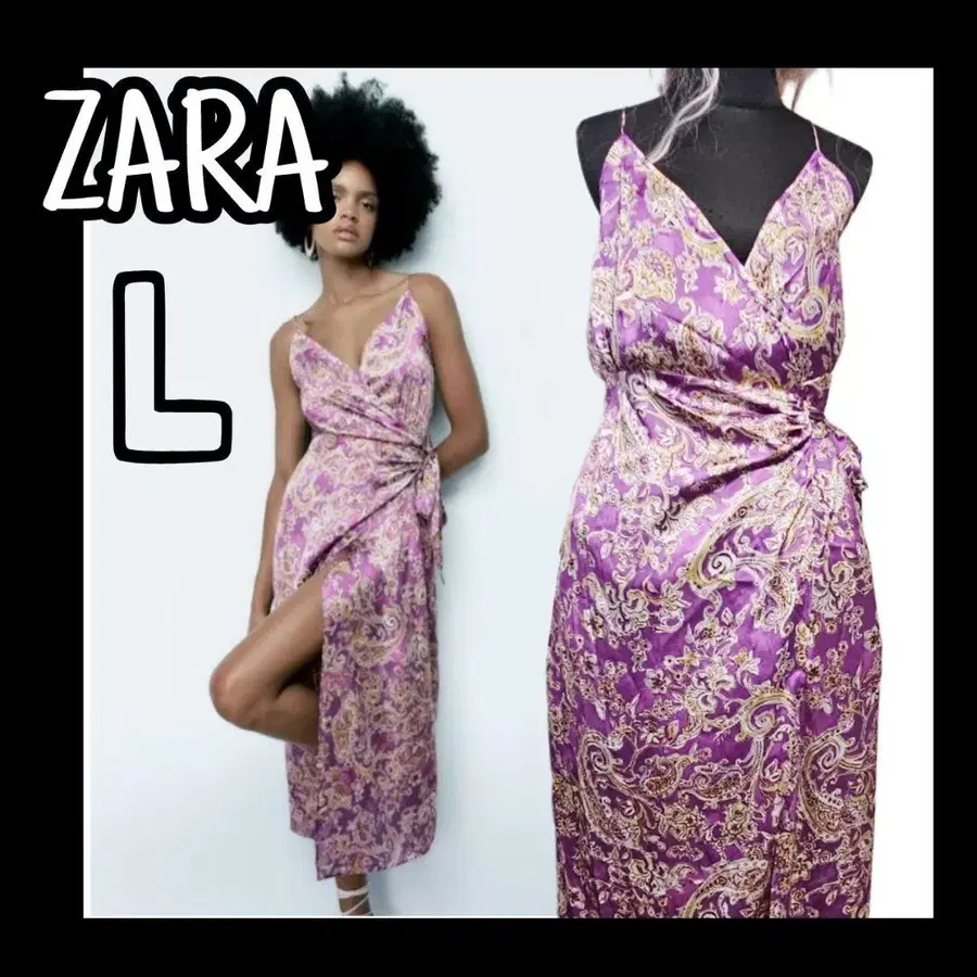 A725 자라 보라색 계열 핑크 계열 페이즐리 랩 드레스 L 카슈쿨