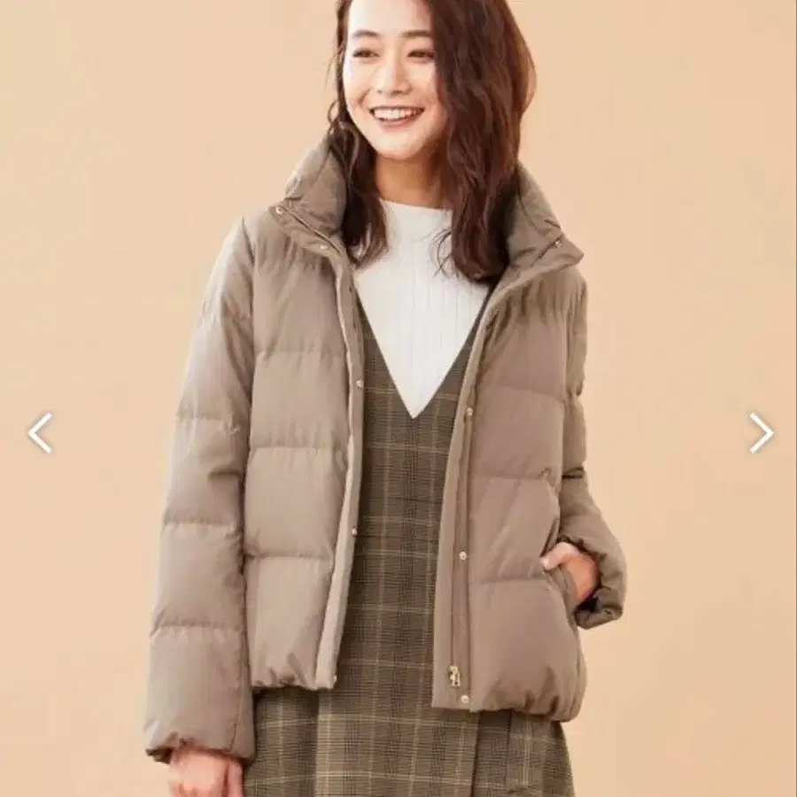 이 시기에 활약! 따뜻함과 코디의 용이성을 겸비한 숏 다운 ■디자인 따뜻함과 코디의 용이성을 고집한, 추운 계절에 추천하는 숏 다운입니다. 적당한 높이의 스탠드 칼라 부분에 턱을 넣어 입체적인 볼륨감을 더해, 너무 캐주얼하지 않은 디자인으로 완성했습니다. 앞 기장이 뒤 기장보다 약간 길게 디자인되어 어떤 하의와도 코디하기 쉽도록 균형을 중시하면서, 허리 둘레를 따뜻하게 보온할 수 있습니다. 아이보리 베이지, 모카, 블랙, 차콜 그레이, 네이비의 고급스러운 색상 전개에 골드 금속 부품이 고급스러움을 더하는 포인트가 되고 있습니다. 차콜 그레이는 차콜 그레이로 보이는 믹스 프린트로 표현했습니다. ■소재 아이보리 베이지, 모카, 블랙은 발수성이 있고 우아한 매트한 표면감의 타프타를 사용하여 촉감이 부드럽고 강도가 높은 소재로 오랫동안 애용하실 수 있습니다. 차콜 그레이와 네이비는 폴리에스테르의 굵은 실을 사용한 부피감 있는 트윌 소재로, 합성의 가벼움과 빗질한 소재와 같은 따뜻함을 느낄 수 있는 터치감을 가지고 있으며, 표면에 미세 기모 가공을 하고 있습니다. 포켓 부분은 기모 스크래치 처리를 하여 보온성이 뛰어납니다. 솜도 다운 90%, 페더 10%로 필파워가 높은 고급 재료를 사용하여 가볍고 매우 따뜻합니다. 얼굴 주변에도 다운을 넉넉하게 사용하여 따뜻하게 입을 수 있습니다.