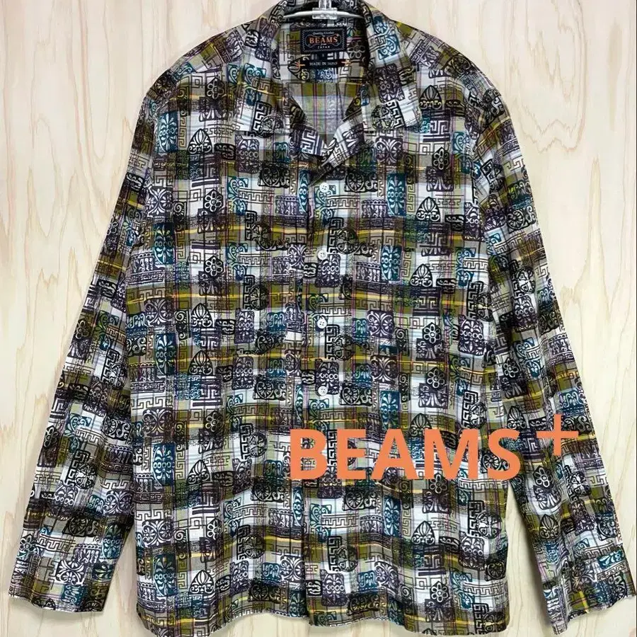 BEAMS+ 인디언 마드라스 체크 블록 프린트 카라 셔츠 S