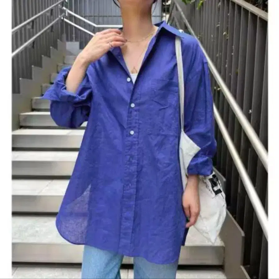 SpickandSpan 코튼 린넨 루즈 셔츠 블루 새상품