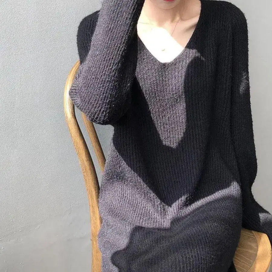 • 블랙 V넥 니트 긴팔