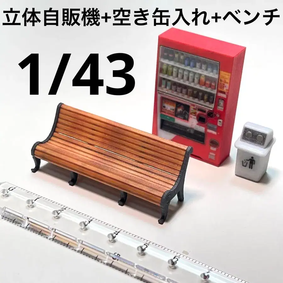 ★눈금자는 포함되어 있지 않습니다. 1/43 음료 부분 입체 자판기 빈 캔통 벤치 세트입니다. 업무용 최고급 풀 컬러 3D 프린터로 제작 완제품 미니어처 인형의 집 주택 모형 디오라마 미니카 미니어처 이미지