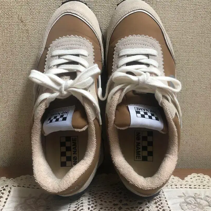 베이지와 브라운 스웨이드와 메쉬 스니커즈, 캐주얼한 레트로 스타일. - 브랜드: NO NAME - 컬러: 베이지/브라운 - 디자인: 스웨이드와 메쉬 콤비네이션 - 밑창: 고무 밑창 - 스타일: 캐주얼 - 끈: 화이트 신발끈 - 로고: NO NAME 로고 - 실루엣: 레트로 스타일 방문해 주셔서 감사합니다. NO NAME의 PUNKY 모델입니다. 저 자신도 구형 CITY-RUN 모델의 36(폭이 좁은)을 신었기 때문에, 이 제품도 온라인에서 36 사이즈만 재고가 남아 있어 구매했지만, 크기가 커서 깔창을 넣고 신었습니다. 3번 정도만 신은 상태로, 상태가 매우 좋습니다. 사이즈가 맞는 분께 깨끗한 상태로 양도하고 싶습니다. 잘 부탁드립니다. ¥29.700