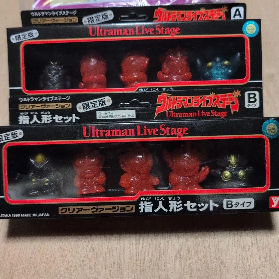 울트라맨 라이브 스테이지 클리어 버전 손가락 인형 세트, 1999년 제조, 일본제. 세트 내용: 울트라맨 라이브 스테이지 손가락 인형 세트 A 타입과 B 타입 버전: 클리어 버전 제조 연도: 1999년 제조국: 일본 방문해 주셔서 감사합니다.