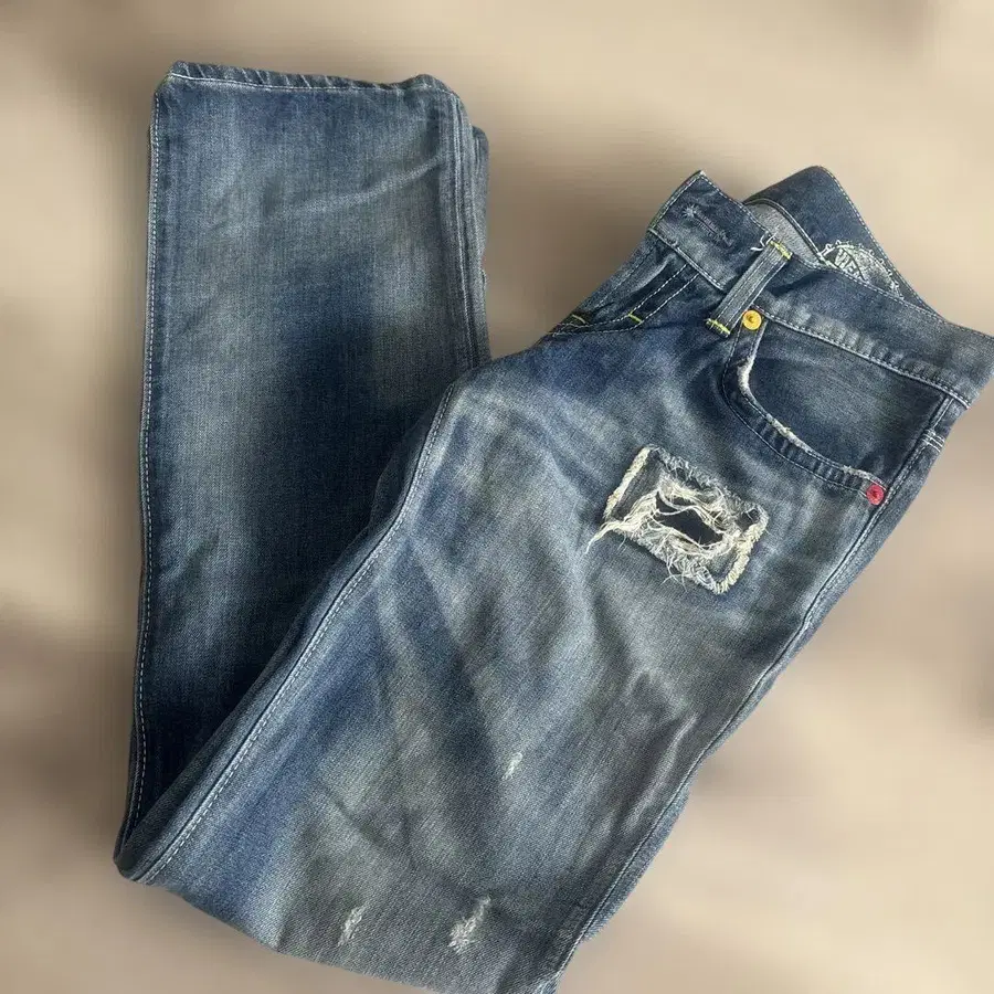 • 00s y2k EDWIN 플레어 데님 데미지 진 archive