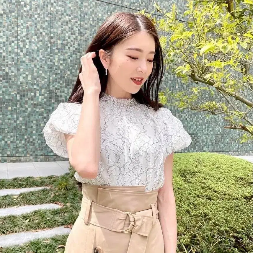 질스튜어트 시어 레이스 개더 퍼프 슬리브 블라우스 여성용